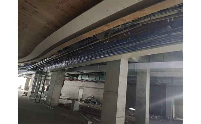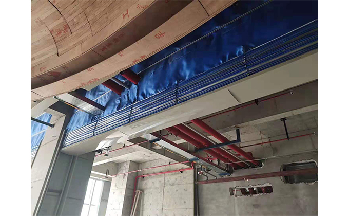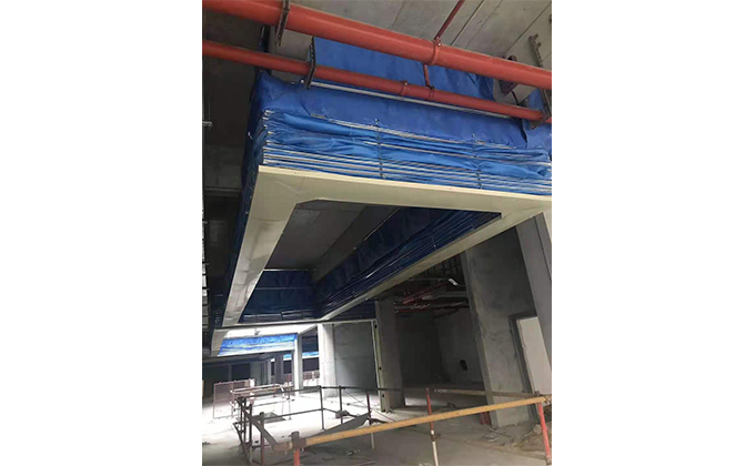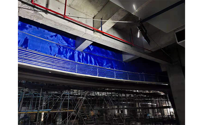 擋煙垂簾垂壁根據(jù)設(shè)計(jì)要求和現(xiàn)場(chǎng)實(shí)際情況采取如下施工順序:首先,搭設(shè)腳手架一放線(xiàn)一打眼--上脹栓一焊骨架。第二,吊件一安裝骨架…